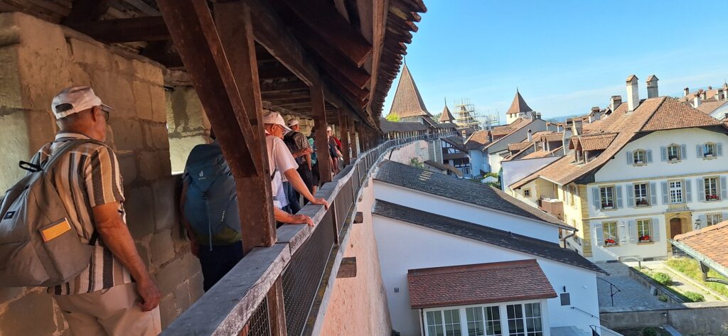 Frisch gestärkt erkundeten wir anschliessend bei strahlendem Sonnenschein das mittelalterliche Zäringerstädtchen mit einer Ringmauer aus dem 13.-17. Jahrhundert. Vor den Toren der Stadt wurde 1476 die Schlacht bei Murten ausgetragen, zwischen Truppen der Eidgenossenschaft und des burgundischen Herzogs Karl des Kühnen. 40’000 Soldaten kämpften, 10’000 Soldaten hatten nicht überlebt.