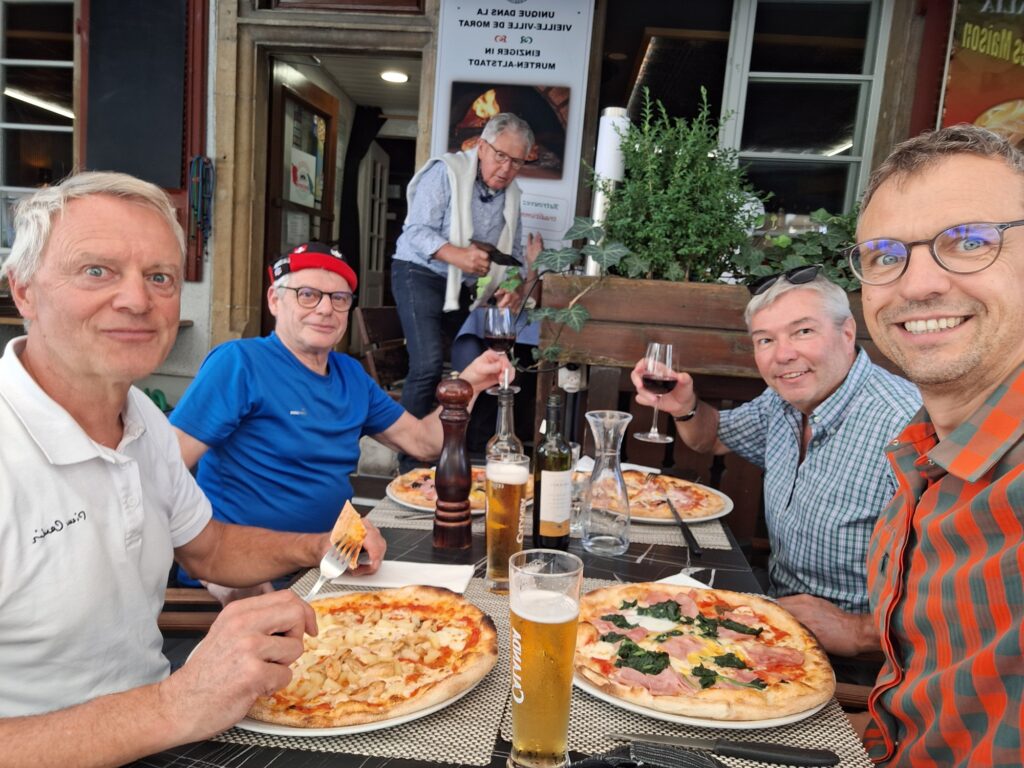 Schon bald meldete sich der Hunger, Mittagessen war angesagt. Die Wahl fiel auf ein italienisches Restaurant. Die meisten Männerriegler hatten sich für Pizza oder ein frisches Pastagericht entschieden. Etwas Rotwein oder Bier durfte nicht fehlen.