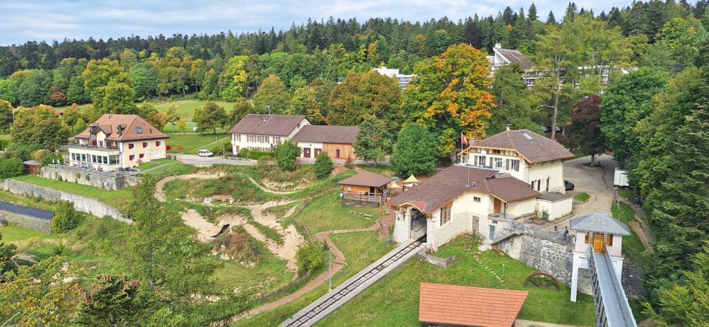 Um 10 Uhr sassen wir erneut im Zug in Richtung Neuchâtel. Von dort wechselten wir in einen Ortsbus, der uns zur Talstation la Coudre führte. Per Zahnradbahn, Funi genannt, erklommen wir den Neuenburger Hausberg Chaumont. Die Bahn war zum Bersten voll, da noch einige Downhillbiker mit ihren Velos im Wagen waren.