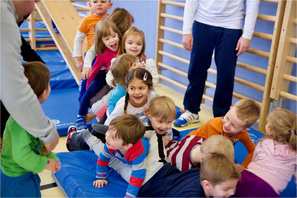 Wir üben spielerisch verschiedene Grundtätigkeiten wie hüpfen, klettern, kriechen, usw. – mit viel Spass und Freude. Gleichzeitig lernen wir unsere Grenzen kennen und probieren Neues aus.